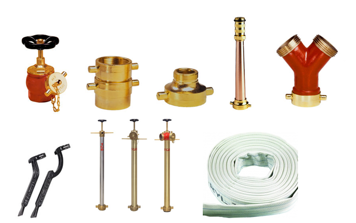 Lanza chorro pleno, reducción, unión para atar, hidrante, derivación, unión tipo mandrilar.